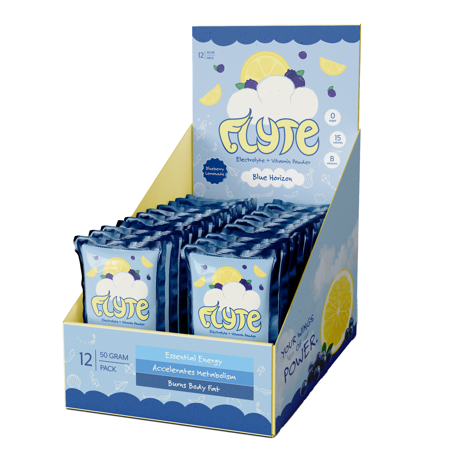 The product line highlights Flyte’s two signature flavors: Blue Horizon and Cloudburst. Each flavor is designed to embody the brand’s balance of wellness and energy. With zero sugar, minimal calories, and essential vitamins, all products support sustained energy without the crash.